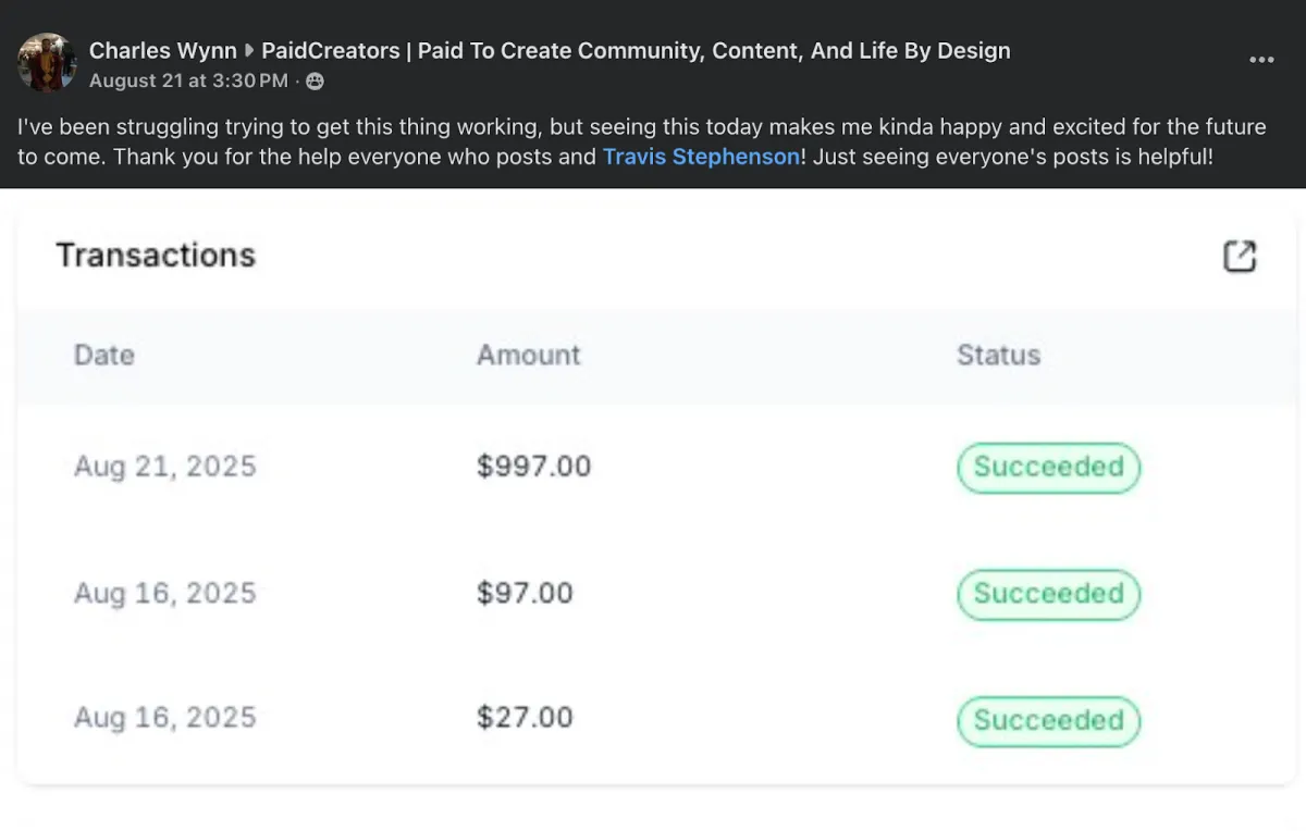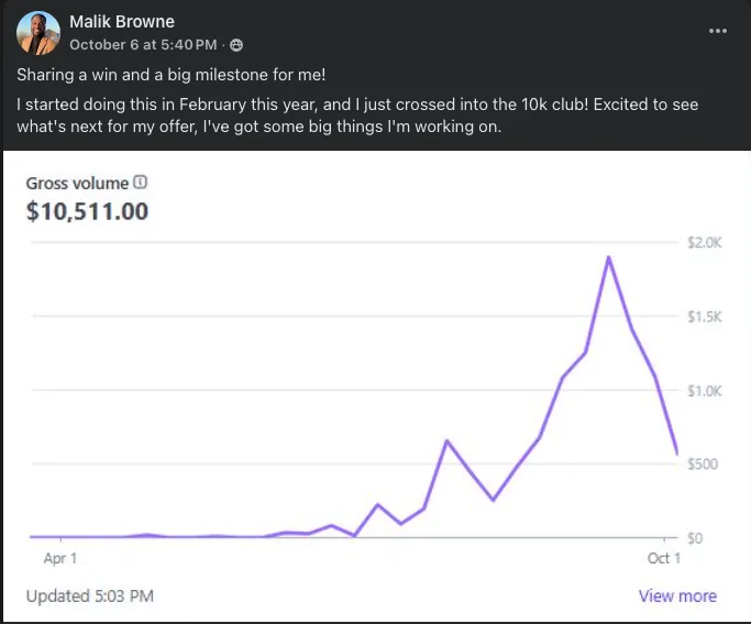 Nowadays… I get sales notifications from products I created months ago. I have students messaging me about $10K+ months they didn't even expect. The system works whether I'm actively involved or completely disconnected.